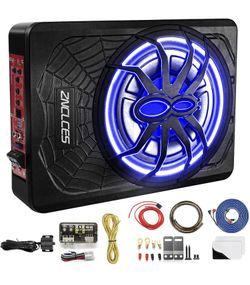 10" 1200W Slim Under Seat Powered Car Subwoofer, Car/Truck Sub Built in Amplifier for Outstanding Heat Dissipation, Powerful bass and Blue LED (Blue L$99Riverside, CA