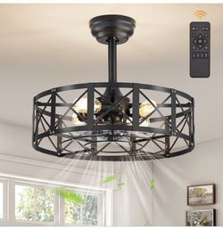 20 Inch Fandelier Caged Ceiling Fans with Lights and Remote, Black Bladeless Ceiling Fan with 6 Speeds and Timing, Farmhouse Samll Fan Lights Ceiling $45Riverside, CA