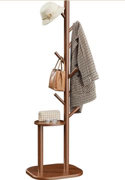 Coat Rack, Freestanding Hall Tree with 8 Hooks & Storage Shelf, Solid Wood Base, 66.3″ Tall Coat Rack Stand for Coats, Hats, Bag in Entryway, Bedroom,$25Riverside, CA