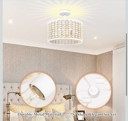 White Wood Beaded Boho Chandelier - Modern Nursery Ceiling Light Fixture, Beaded Semi Flush Mount Light, Farmhouse Lights for Bedroom Hallway Foyer Li$25Riverside, CA