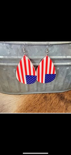 Faux Leather American Flag Earrings $8Red Bluff, CA