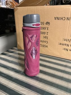 glass water bottle with a silicone protective sleeve and a locking flip-top lid. The inside is a glass bottle The outside is a silicone grip/sleeve ($8Lancaster, CA