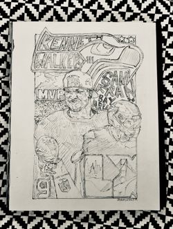 Original Pencil Drawing Kenneth Walker III MVP Football Collectable One Of A Kind Illustration Sports NFL Bay Area $150Ripon, CA