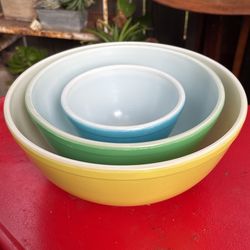 Vintage Pyrex Nesting Bowls Yellow Blue Green Antique Mixing Bowl Mid century Modern Cookwear Cooking Baking $75Ripon, CA