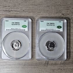 2 -1965 Dimes Special Mint Set CAC Graded SMS65 Coins$65San Jose, CA