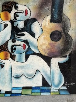 Textured Abstract Painting – Cubist Female Figures with Guitar – Signed$80Irvine, CA