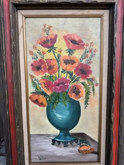 Vintage Oil Painting – Bright Poppies in Teal Vase – Signed Rose Miller – Rustic Wood Frame$110Irvine, CA