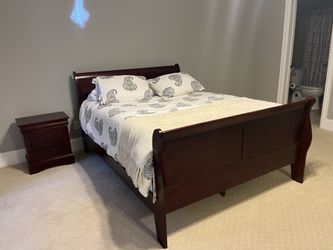 Queen sleigh bed with mattress and nightstand$350Atlanta, GA