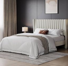 Queen Size Bed Frame White Tufted Upholstery Platform Bed Frame Box Sealed $199Miami, FL