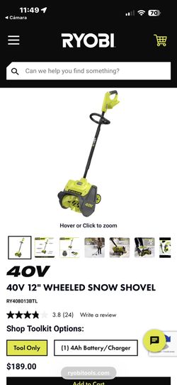 RYOBI 40V HP Brushless 18 in. Single-Stage Cordless Electric Snow Blower with 6.0 Ah Battery and Charger$320$320Anaheim, CA