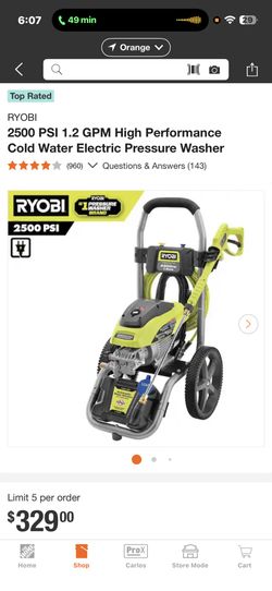 RYOBI 2500 PSI 1.2 GPM High Performance Cold Water Electric Pressure Washer$220 Brand New Seal Box $220Orange, CA