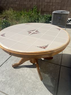 Round Wooden Table With Tile Top And 4 Chairs $60Ontario, CA