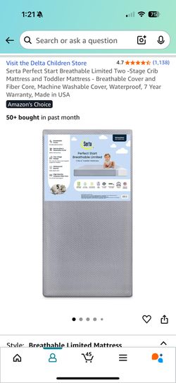 Serta Perfect Start Breathable Limited Two -Stage Crib Mattress and Toddler Mattress - Breathable Cover and Fiber Core, Machine Washable Cover, Waterp$59San Diego, CA