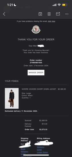 Authentic Men’s Moncler Jacket $499Wellesley, MA