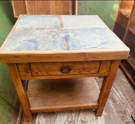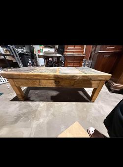 Vtg Rustic oak and slate tile coffee table$80San Antonio, TX