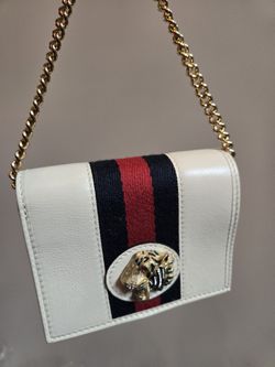 Gucci Raja Tiger Bifold Chain Wallet Leather Canvas White Mini Purse $600Framingham, MA