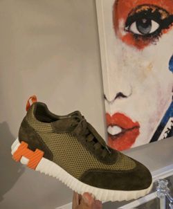 Men's Hermes Bouncing Mesh Suede Vert Toundra Sneakers Shoes Size US 9 EUR 42$500Framingham, MA