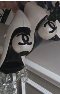 Chanel CC Pearl Logo Round Heel Mary Jane Pumps Shoes White Black Size 40 US 9$495Framingham, MA