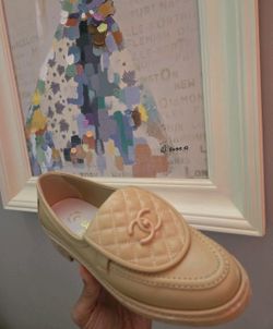 Chanel CC Logo Quilted Leather Beige Nude Moccasin Shoes Size 39 US 8$425Framingham, MA