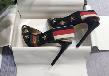 Gucci Star Bee Black Leather Stiletto Shoes Size 38 8$650Framingham, MA