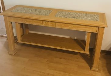 Sofa Table w/ Granite Inlays Measurements: 55 1/2” Length 17” Width 28 1/2” Height Measurements: (Granite Inlays) 22 1/2” Length 9 3/4” Width 3/4” T$250Spring Grove, IL