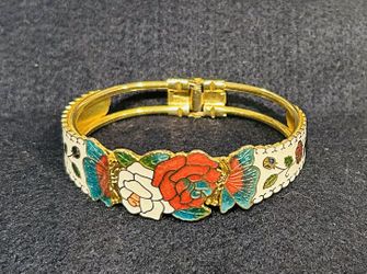 Vintage Cloisonné ~ Hinged Clamp Bracelet ~ Multicolor Gold Tone Flower$15Spring Grove, IL