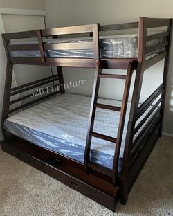 Twin Full Expresso Bunkbed With Orthopedic Mattress Included!!$649Rialto, CA
