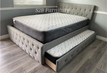 Full Twin Grey Frenchi Trundle Bed With Orthopedic Mattress Included!!$479Anaheim, CA