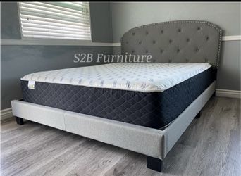 Queen Grey Euro Tufted Bed With Ortho Mattress Included!!$349Chino, CA