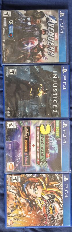PS4 Video Games Avengers Pac-Man Galaga Digdig Injustice 2 Dragon Ball Fighters$50Bakersfield, CA