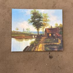 Tranquil Riverside Cottage - Oil Painting 20x24$60Houston, TX