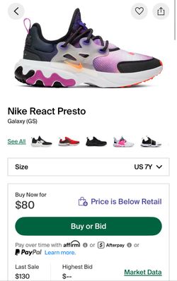 Nike React Presto Galaxy (GS)$99Portland, OR