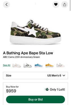 A Bathing Ape Bape Sta Low ABC Camo 20th Anniversary Green$499Portland, OR
