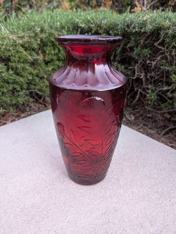 Vintage Spanish Ruby Red Clear Glass Vase 13" Tall with Embossed Dandelion Flowers$50Irvine, CA