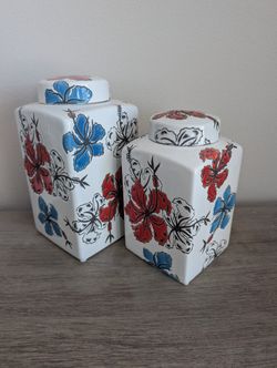 Set of 2 David Tutera Lidded Ginger Jars in Blue & Red Floral Porcelain Décor, Cute Home Decor$40Irvine, CA