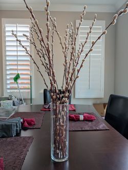 Vintage Cylinder Glass Vase by Libbey with Dried Pussy Willows, Tall Vase Home Floral Decor$12Irvine, CA