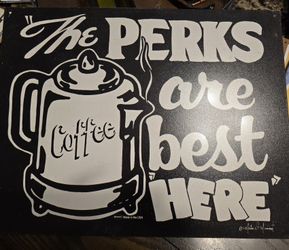 Coffee Perks Vintage Metal Sign- Marty Mummert$50Grand Rapids, MI