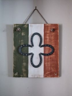 Irish flag- lucky horseshoe shamrock, handmade wall art with hooks for keys$15Dedham, MA