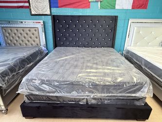 King platform bed frame beige velvet with mattress on sale for:$995Houston, TX