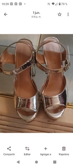 sandalias de tacón alto con plataforma y tiras al tobillo, con un acabado metálico o brillante.$5Mesa, AZ