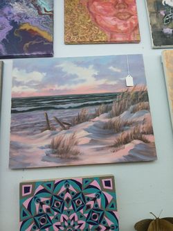 Beautiful Pink Blue Beach Scene Oil Painting $20Hampton, VA