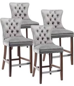 Virabit Set of 4 Velvet Bar Stools with 27 Inch Wing Back with Back Button and Nail Head Trim, Upholstered Bar Chairs with Wooden Legs, for Kitchen,$180Alhambra, CA