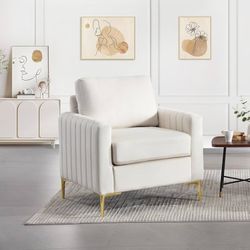 Modern Velvet Accent Chair, Comfy Living Room Armchair with Thick Cushion, Upholstered Reading Armchair, Mid Century Sofa Chair with Gold Legs, Side C$75Alhambra, CA