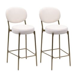 30'' Upholstered Bar Stools Set of 2, Velvet Counter Stool with Backrest & Footrest, Round Dining Chairs for Kitchen,Dining Room(Creamy White)$90Alhambra, CA