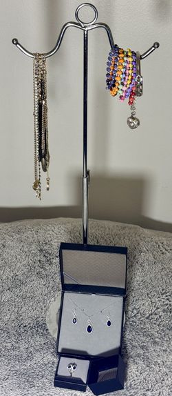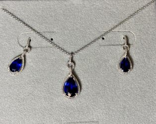 Silver Diamond Blue Sapphire Necklace & Matching Earrings Set$99South Gate, CA