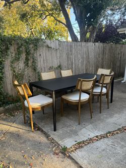 Perigold Dining Set with Black Ethnicraft Bok Oak Table 79” + Four Hands Britt Chairs Set of Six Light Wood with Cane$3,500Dallas, TX