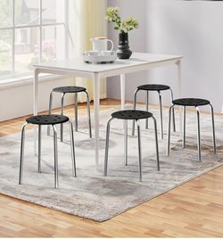 Plastic Stacking Stools Flexible Seating 17.3in Portable Backless Stools Round Top Metal Frame for Home Garden Kitchen Silver Set of 5$45Fontana, CA