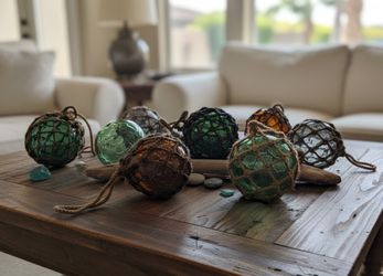 1920s 6 inch fishing floats, dark, green, one Amber Brown, excellent condition$30Rancho Cucamonga, CA