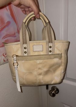 SoldVintage Coach signature scribble mini tote pale yellow beige$60Escondido, CA