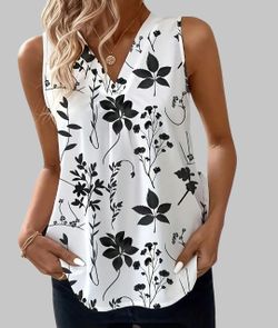 New Large Women's Flower Tank Tunic Style Blouse. Dress up or dress down.